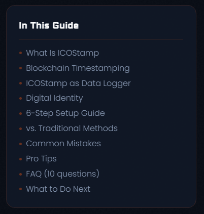 The key points from this guide: blockchain icostamp technology creates independently verifiable, immutable records; the data logging features support compliance and audit workflows at scale; and digital identity verification through ICOStamp adds a layer of cryptographic trust that traditional methods can't match.